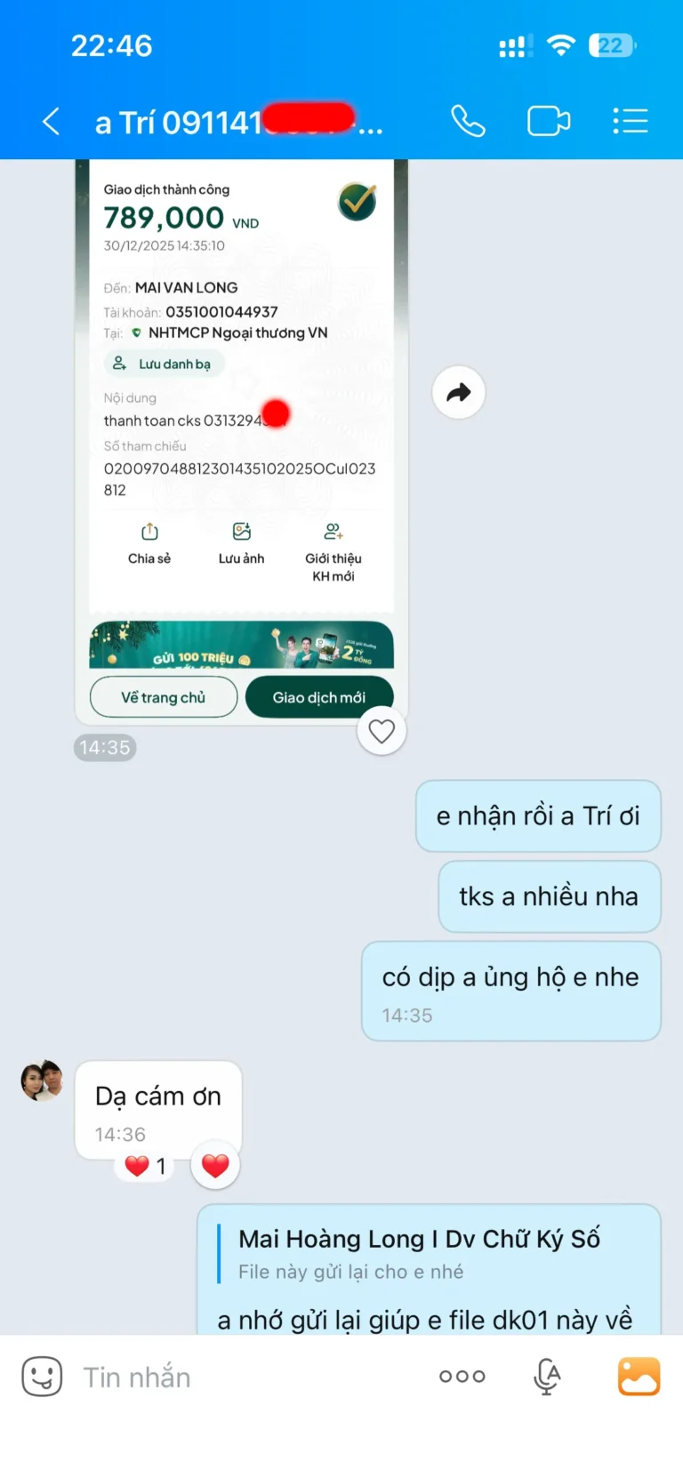 Khách hàng tiến hành thanh toán, bổ sung thêm hồ sơ còn thiếu (nếu có).